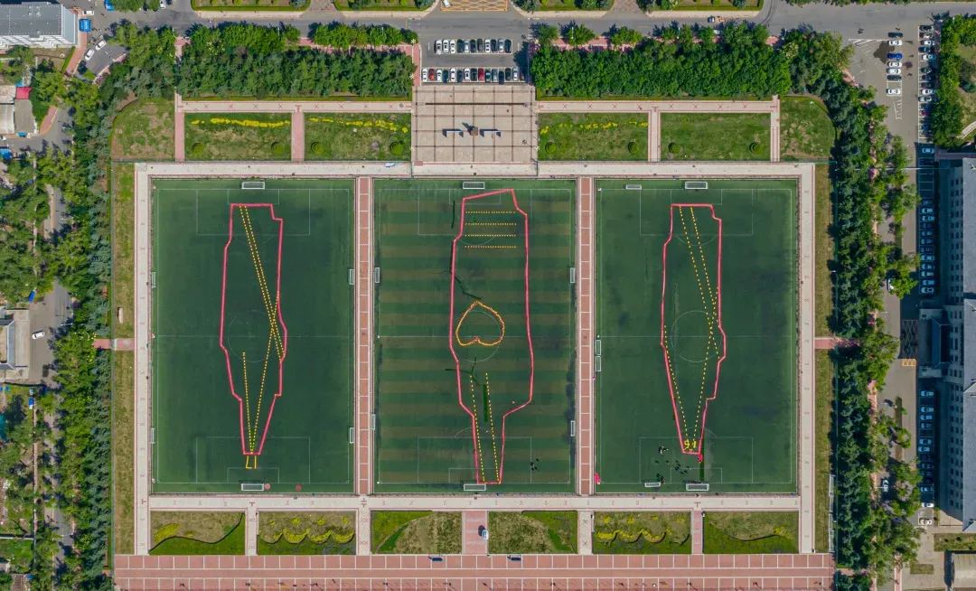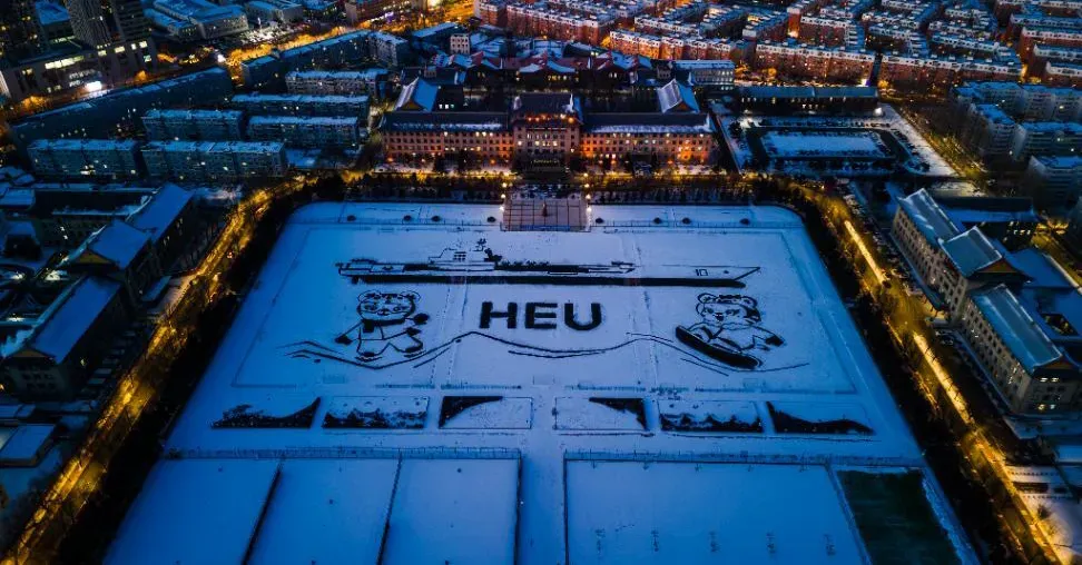 硬核浪漫!哈工程1200余名师生,用北斗定位在操场绘制了一艘“福建舰”